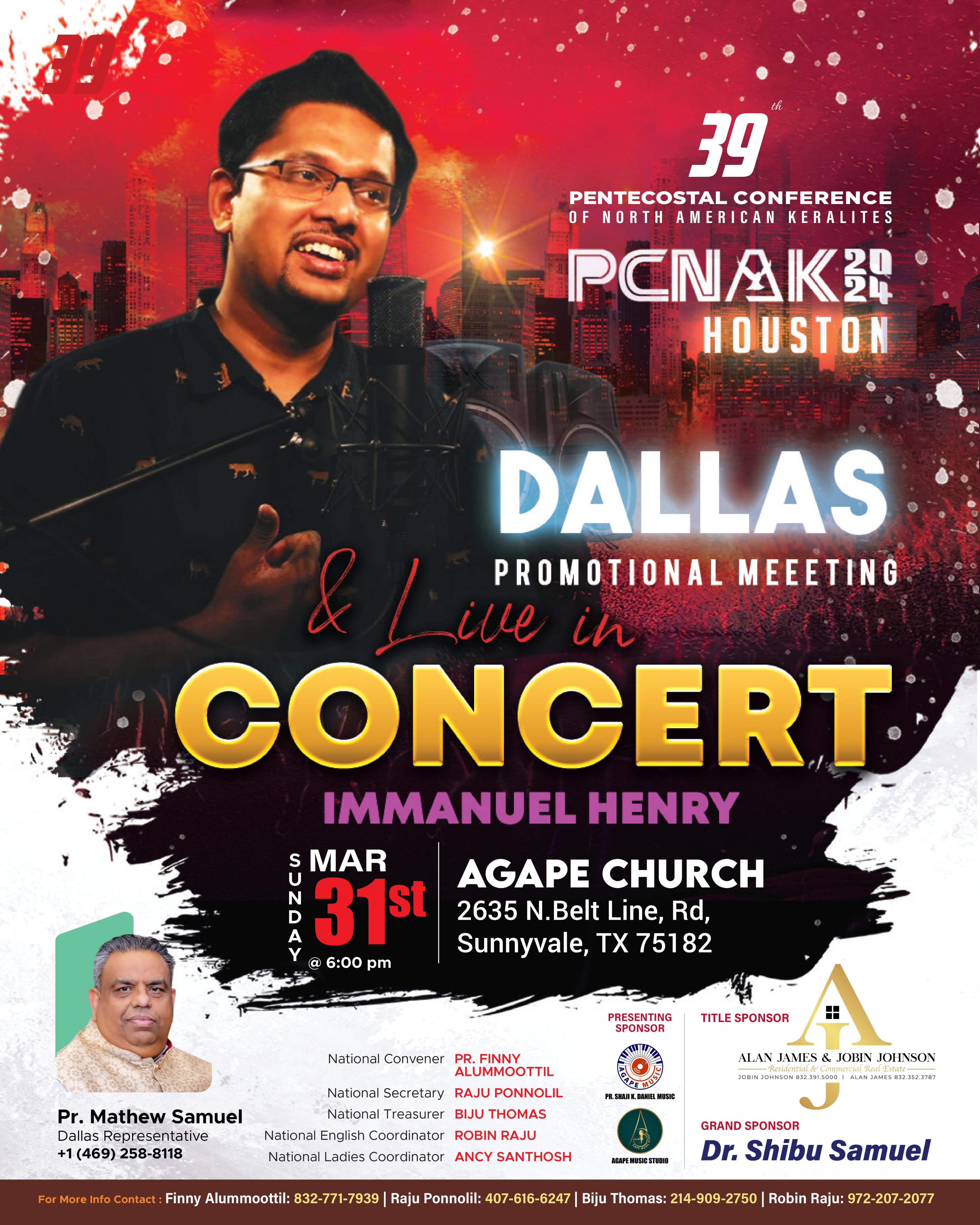 We are excited to host the 39th edition of the conference in the great city of Houston, TX on July 4-7, 2024. It is after a break of 14 years that the conference is coming back to Houston and the entire Keralite Pentecostal community of Houston and the large state of Texas is looking forward to this great event.